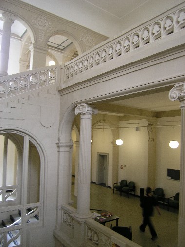 Der Prachtaspekt des im Stil der Neo-Renaissance gehaltenen Gebäudes ist im wesentlichen unverändert erhalten geblieben; lediglich die großartige Lichtkuppel ist im 2. Weltkrieg verloren gegangen. Das im Jahr 2004 zur ursprünglichen Klarheit zurückgebaute Foyer, die modernen und funktionalen Sitzungssäle und das palastartige Treppenhaus bestimmen den Inneneindruck des Gebäudes.